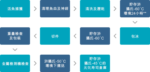 **The food quality is ensured by adhering to the freezing treatment guidelines in The Code of Practice for Fish and Fishery Products as prescribed by the Codex Alimentarius Commission (CAC) and the Centre of Food Safety (CFS) under Hong Kong Food and Environment Hygiene Department, including storing all ingredients at -20°C or below for seven days; or -35°C or below for about 20 hours for fish intended for raw consumption to kill parasites.